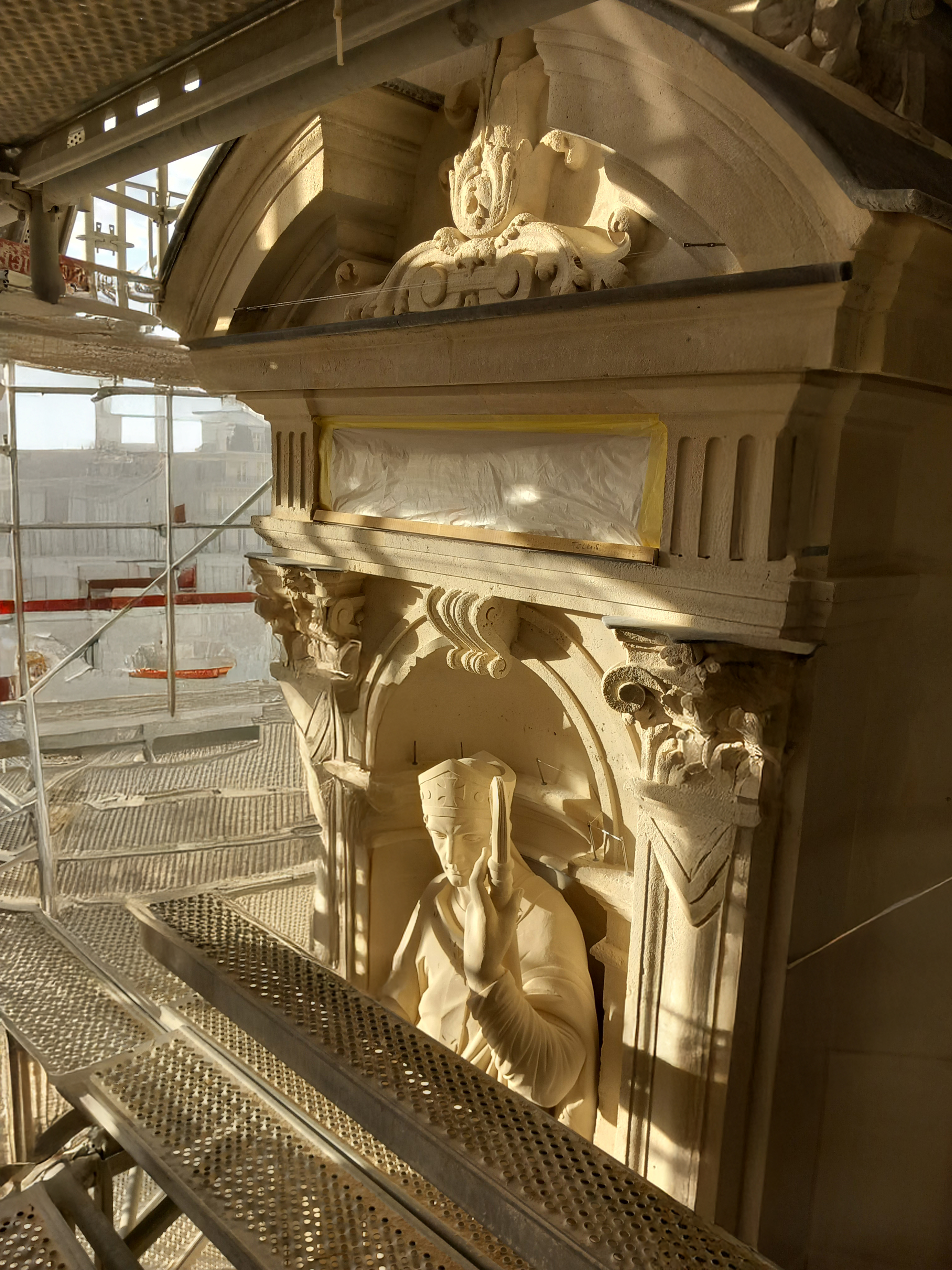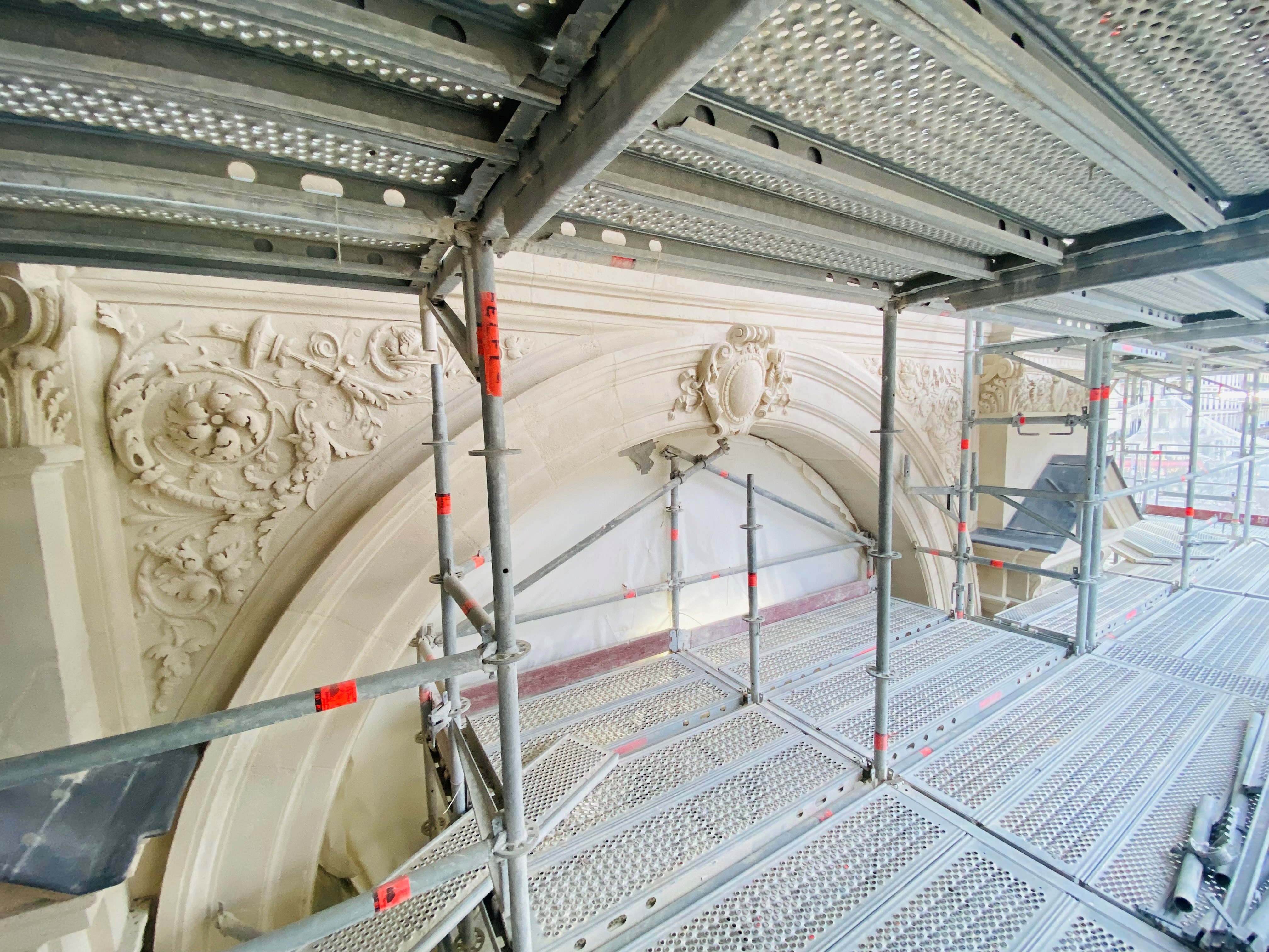 Après la restauration du Campanile achevée en 2023, c’est désormais le massif d’entrée qui s’apprête à retrouver toute sa lisibilité architecturale. Échafaudé depuis 2018 et en restauration depuis 2023 dans la continuité du programme de travaux, ce nouvel épisode marque une étape importante du chantier avec le démontage progressif de l’échafaudage de la tranche 2.